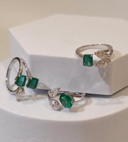 Emerald Diamond Trio Rings - Double Diamond / Green